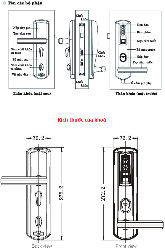 ⇒ Phương thức mở khoá: Vân tay, mật mã, chìa cơ