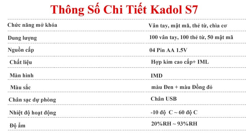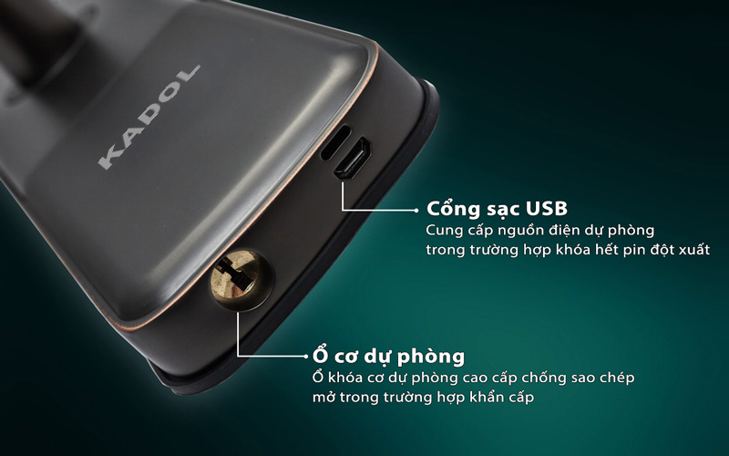 Chìa cơ: ngoài các chức năng mở khóa bằng công nghệ thông minh kadol S7 còn trang bị chức năng chìa khóa cơ dự phòng khi sự cố khẩn cấp