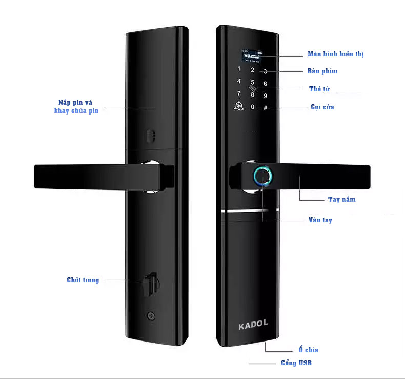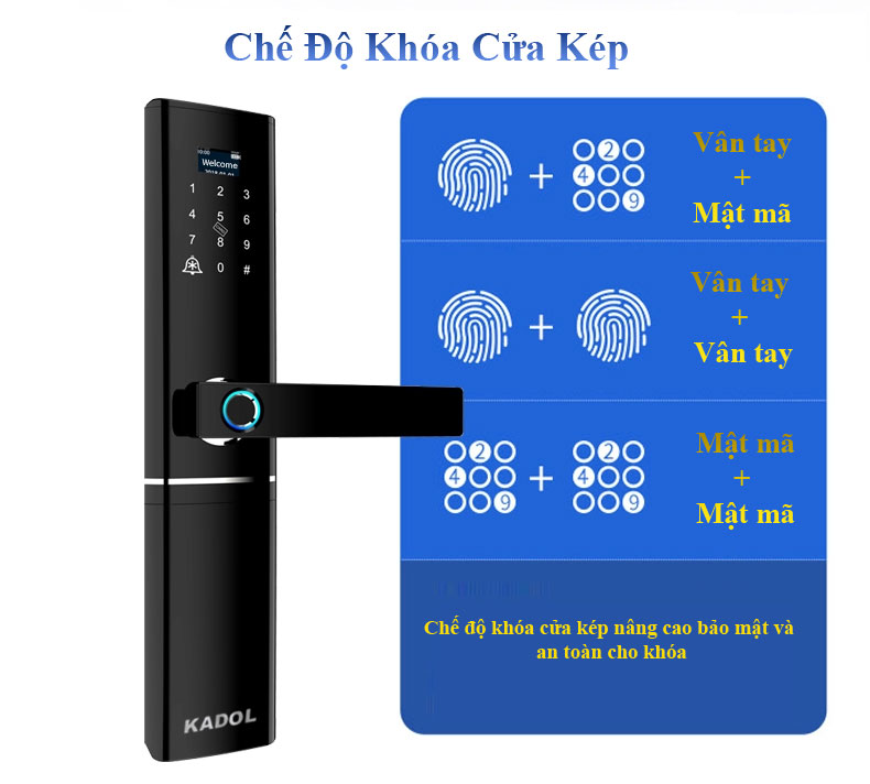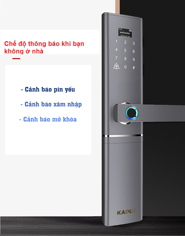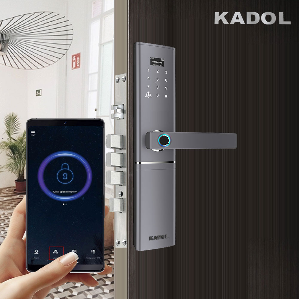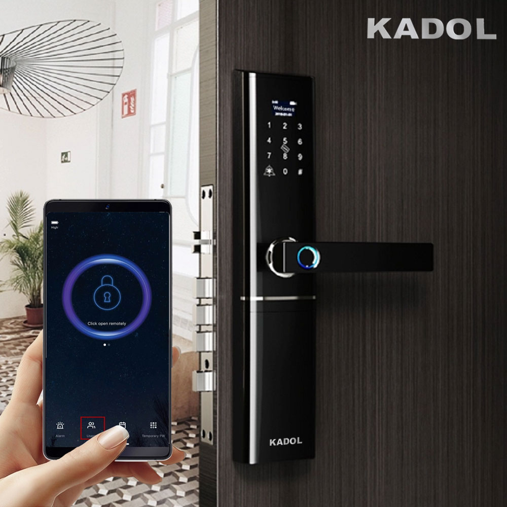 Khóa cửa vân tay mở từ xa bằng app tuya Kadol FP8 tích hợp chức năng mở khóa từ xa bằng app tuya trên điện thoại. nổi bật với màn hình Kính Cường Lực siêu nhạy siêu sang. Ngoài ra cho phép bạn cấp mật mã mở khóa từ xa dù bạn ở bất kỳ nơi đâu
