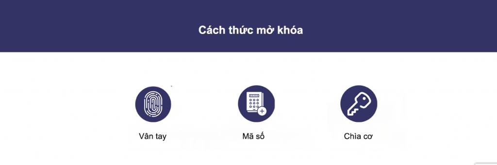 | Chức năng mở khóa: | Vân tay, mật mã, chìa cơ |