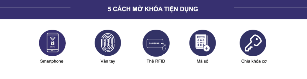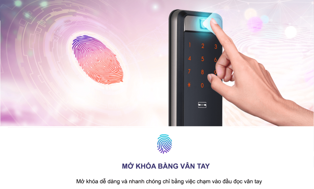 | Chức năng | Vân tay, mật mã, thẻ từ, chìa cơ |